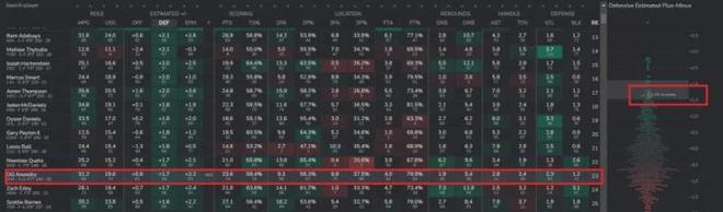 在美国dunks-threes网站上,OG的DEF每百回合防守影响力评分为1.7在全联盟排名第22,在纽约队内排名第1.